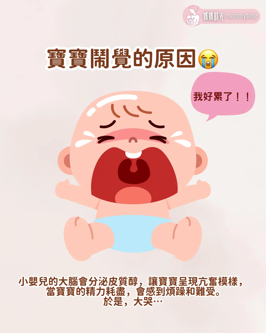 成人困了,大腦會分泌褪黑素來放鬆我們的肌肉,讓我們快速進入夢鄉。而,小嬰兒卻不同…因為小嬰兒的大腦會分泌皮質醇,讓寶寶呈現亢奮模樣,當寶寶的精力耗盡,會感到煩躁和難受。於是就會大哭⋯
