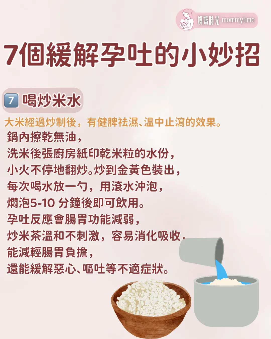 有孕吐反應多是腸胃功能減弱,炒米茶溫和不刺激,容易消化吸收,能減輕腸胃負擔,還能緩解惡心、嘔吐等不適症狀。