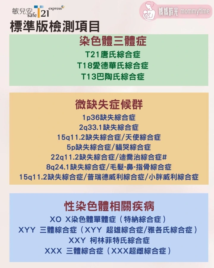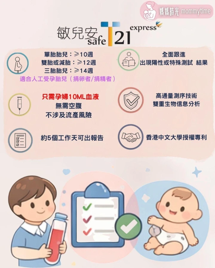 T21(或稱敏兒安SAFE T21)是香港常見的無創性胎兒染色體產前檢測,它透過分析孕婦血液中的胎兒DNA🧬,準確篩查唐氏綜合症(由第21號染色體異常引起)等常見染色體疾病,準確度高(>99%),過程安全無創,可在懷孕早期(最早🔟週)進行,是比傳統檢查更精確的選擇。