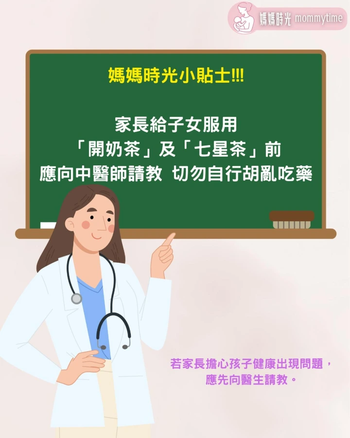 「開奶茶」與「七星茶」是家傳戶曉的嬰幼兒涼茶,常用於小兒受驚夜啼、痰熱積滯、乳食內積的情況。