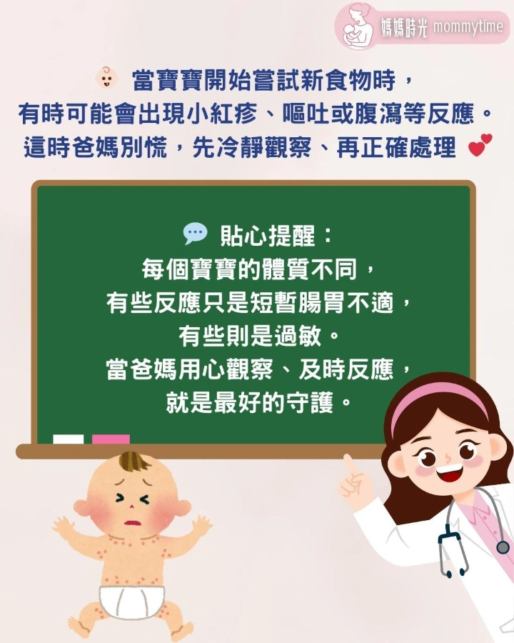 💬 貼心提醒:�每個寶寶的體質不同,有些反應只是短暫腸胃不適,有些則是過敏。當爸媽用心觀察、及時反應,就是最好的守護 💕